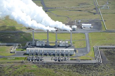 Island ist ein Teil des mittelatlantischen Rückens und liegt darüberhinaus noch über einem Hot Spot – über einem „heißen Fleck“, der durch einen →Plume hervorgerufen wird. Der Nachteil ist, dass man immer mal mit Vulkanausbrüchen rechnen muss. Der Vorteil ist, dass die Erde hier thermische Energie in Form von erhitztem Wasser zur Verfügung stellt. Diese geothermische Energie wird in geothermischen Kraftwerken genutzt, zur Erzeugung von Wärme, aber auch von elektrischer Energie. In der Nähe des Þingvallavatn liegt das größte Geothermalkraftwerk Islands, das Nesjavellir-Kraftwerk, das über Bohrlöcher das heiße Wasser nutzt. Es produziert 120 MW elektrische Energie und 1800 l/s heißen Wassers (das entspricht 300 MW). Allerdings wird nicht, wie man meinen könnte, das heiße Wasser aus dem Erdinnern direkt zum Duschen und Heizen genutzt. Es enthält viele Mineralien, die Leitungen und Anlagen angreifen und schädigen würden. Statt dessen wird kaltes, „unschädliches“ Wasser mithilfe des heißen Wassers aus der Erde erhitzt und dann durch Pipelines zu den Verbrauchern in Reykjavík transportiert. Elektrische Energie wird über Turbinen erzeugt, die durch heißen Dampf angetrieben werden.