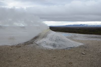 In der Nähe des Gletschers Langjökull liegt das Hochtemperaturgebiet Hveravellir mit seinen heißen Quellen.